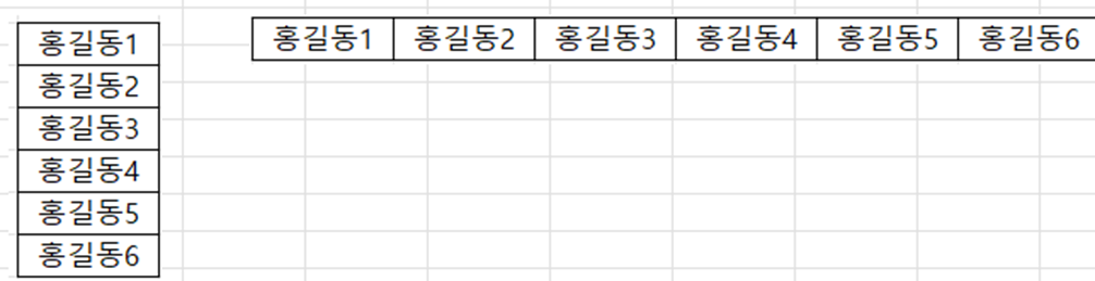 저 셀 범위 대신, array 상수 {"홍길동1","홍길동2","홍길동3","홍길동4","홍길동5","홍길동6"} 를