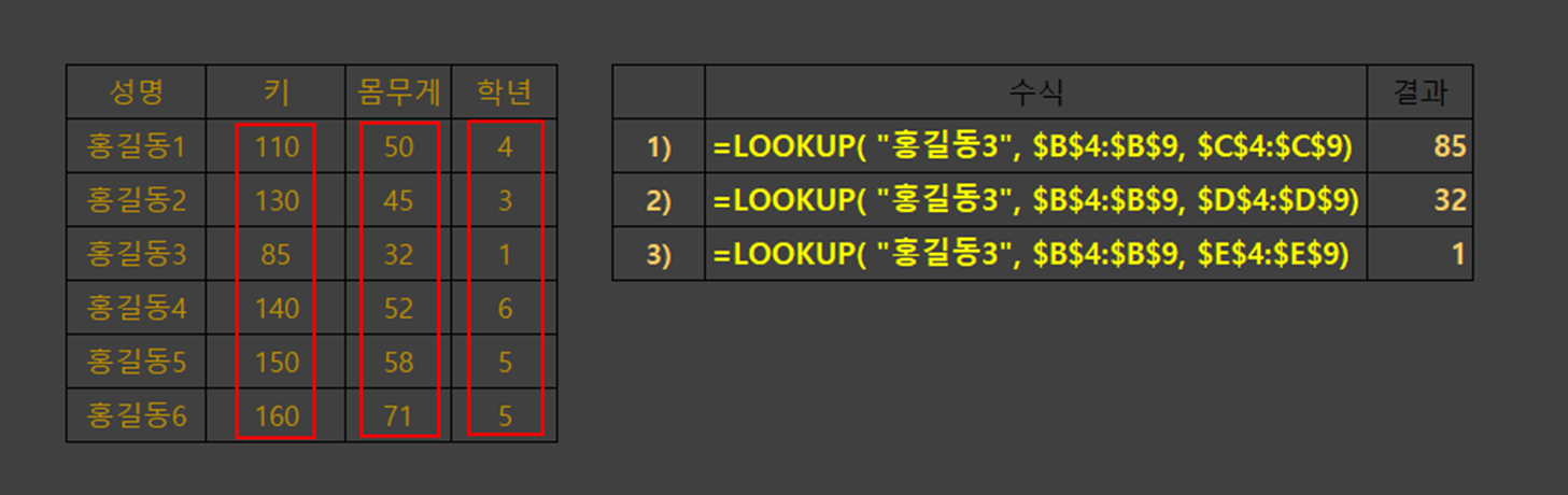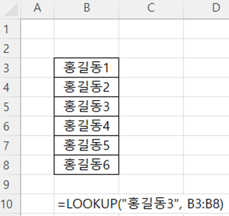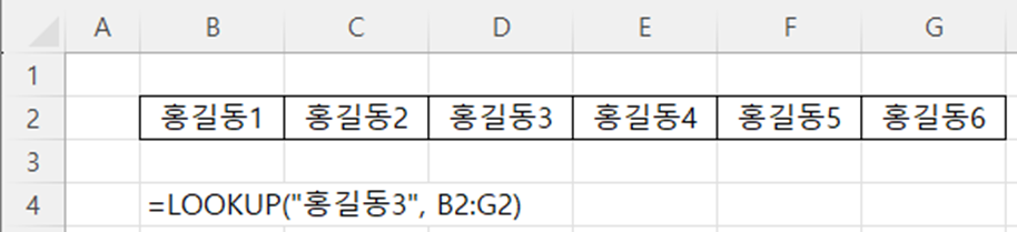가장 단순하게, "홍길동3"을 찾는 LOOKUP 함수를 만든다면, LOOKUP("홍길동3", 범위) 이렇게 됩니다.