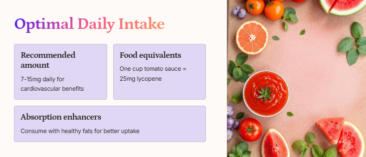 주의할 점은 과도한 섭취보다는 균형 잡힌 식단의 일부로 라이코펜을 섭취하는 것입니다. 하루 평균 10mg 정도의 라이코펜 섭취가 건강에 도움이 될 수 있으며, 이는 대략 한 개의 토마토나 두 세 스푼의 토마토 소스와 같은 양입니다.