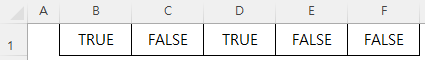 B1:F1 범위에 TRUE/FALSE 값이 들어가 있습니다.