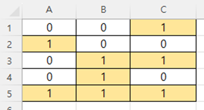 데이터 범위에 1과 0이 아니라, TRUE와 FALSE만 있을 때,