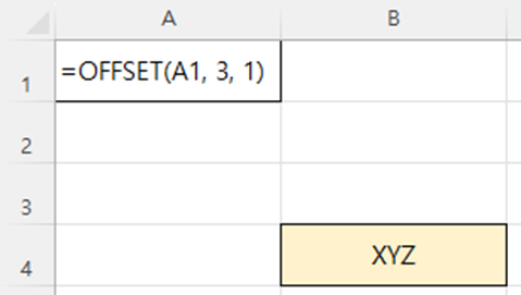 A1에서 3행, 1열 이동하면 B4셀입니다. 따라서, XYZ를 반환합니다.