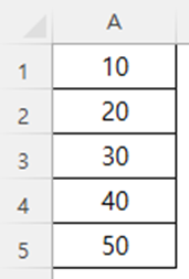 A1:A5 에 있는 숫자의 평균은 다음과 같이 구합니다.