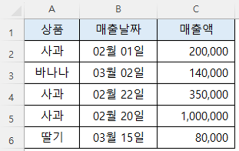 "사과"의 매출액만 합산하고 싶다면,