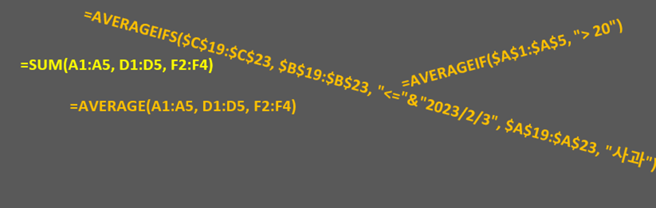 AVERAGE(A1:A5) 은 SUM(A1:A5)/ COUNT(A1:A5) 와 같습니다.