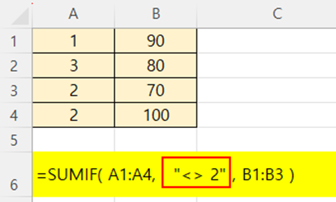 조건: A열 값이 2가 아닌 행의 B열 값만 더하라.