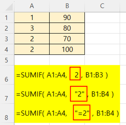SUMIF() 함수에서 조건식을 만들 때 기억해야할 사항은