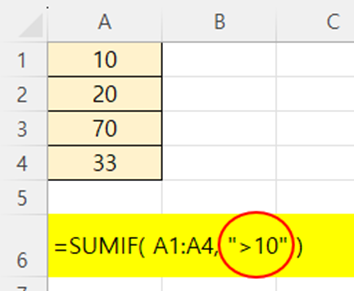 A1~A4 셀에 아래와 같이 숫자가 있을 때도, 10보다 큰 값들을 더하고 싶다면,